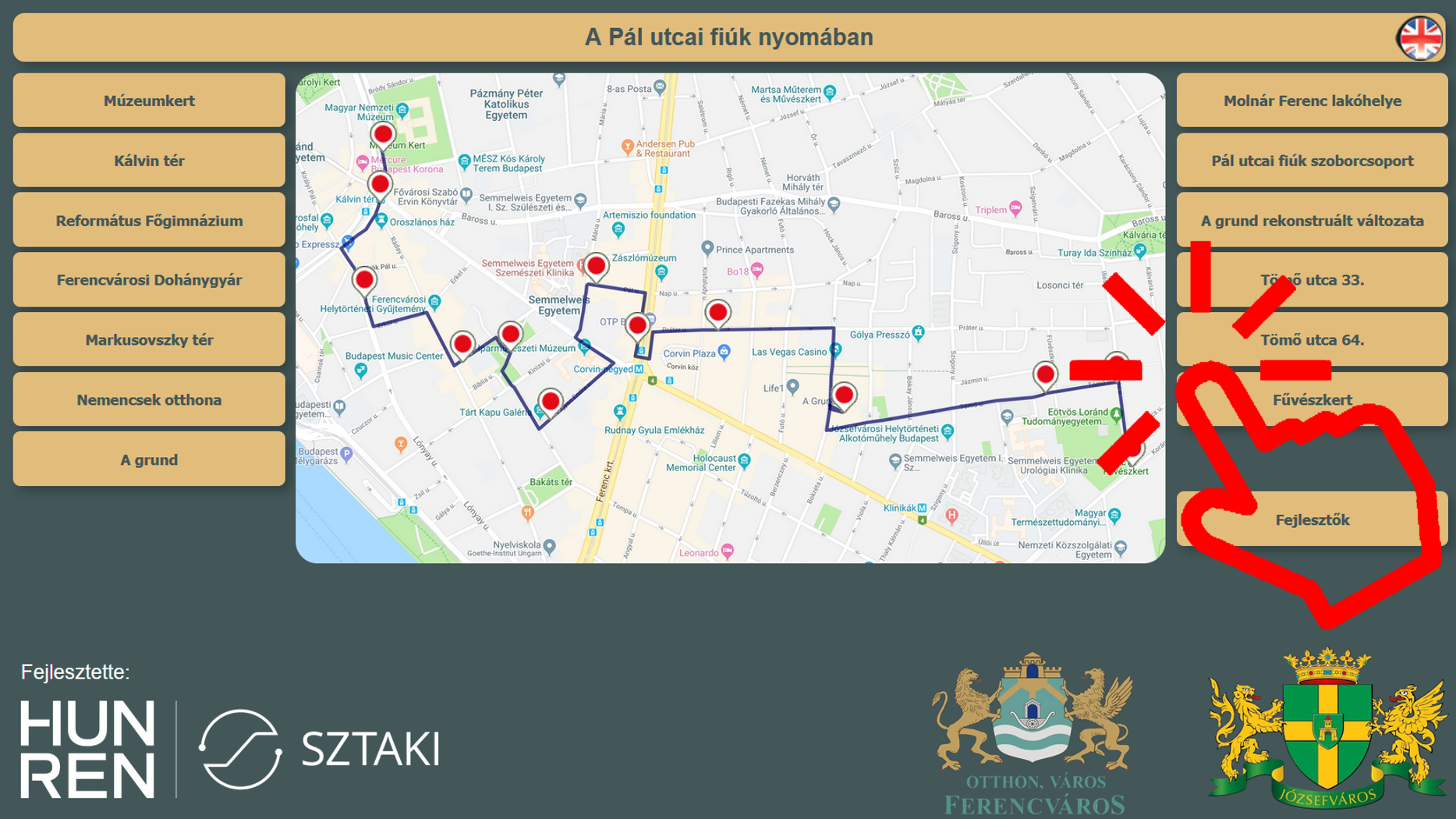 FerencvárosA Pál utcai fiúk nyomában címmel mobilapplikációs sétát fejlesztettünk Ferencváros és Józsefváros közös finanszírozásában. Az okostelefonos interaktív séta segítségével Molnár Ferenc világhírű regényének helyszíneivel lehet megismerkedni; a mű történetei, élményei élhetőek újra.